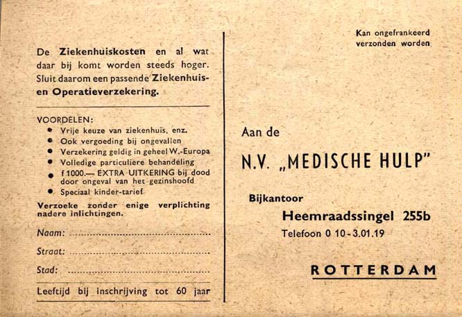 Reclame van N.V. Medische Hulp (jaren '30?)