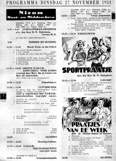 Zo werd dan in 1928 in Amsterdam de “NIROM” opgericht. NIROM staat natuurlijk voor “Nederlands Indische Radio Omroep Maatschappij”. Met uitzenden werd pas in september 1934 begonnen, omdat de voorwaarde was gesteld dat de uitzendingen binnen één jaar na het begin op heel Java en binnen drie jaar in de gehele archipel te ontvangen zouden zijn. Dit vereiste een gedegen voorbereiding en de opbouw van een netwerk van zenders.